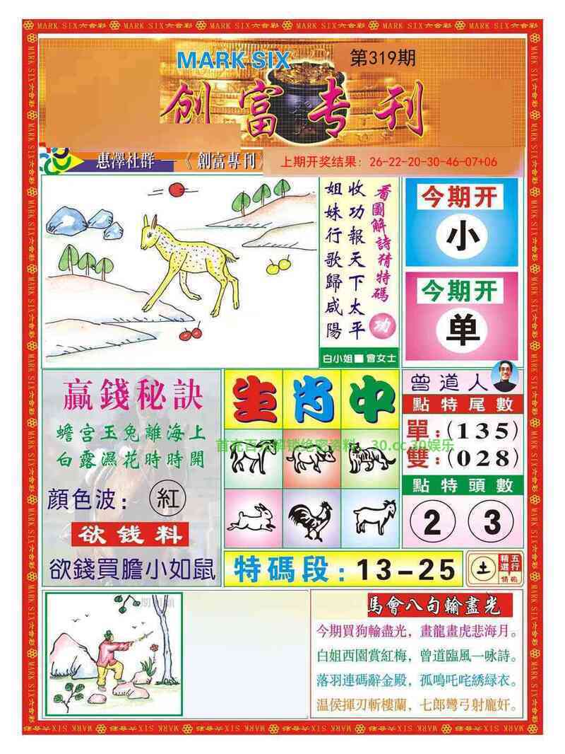 319期:正版创富网:一国春风三十四,婊子钟情便绸寥